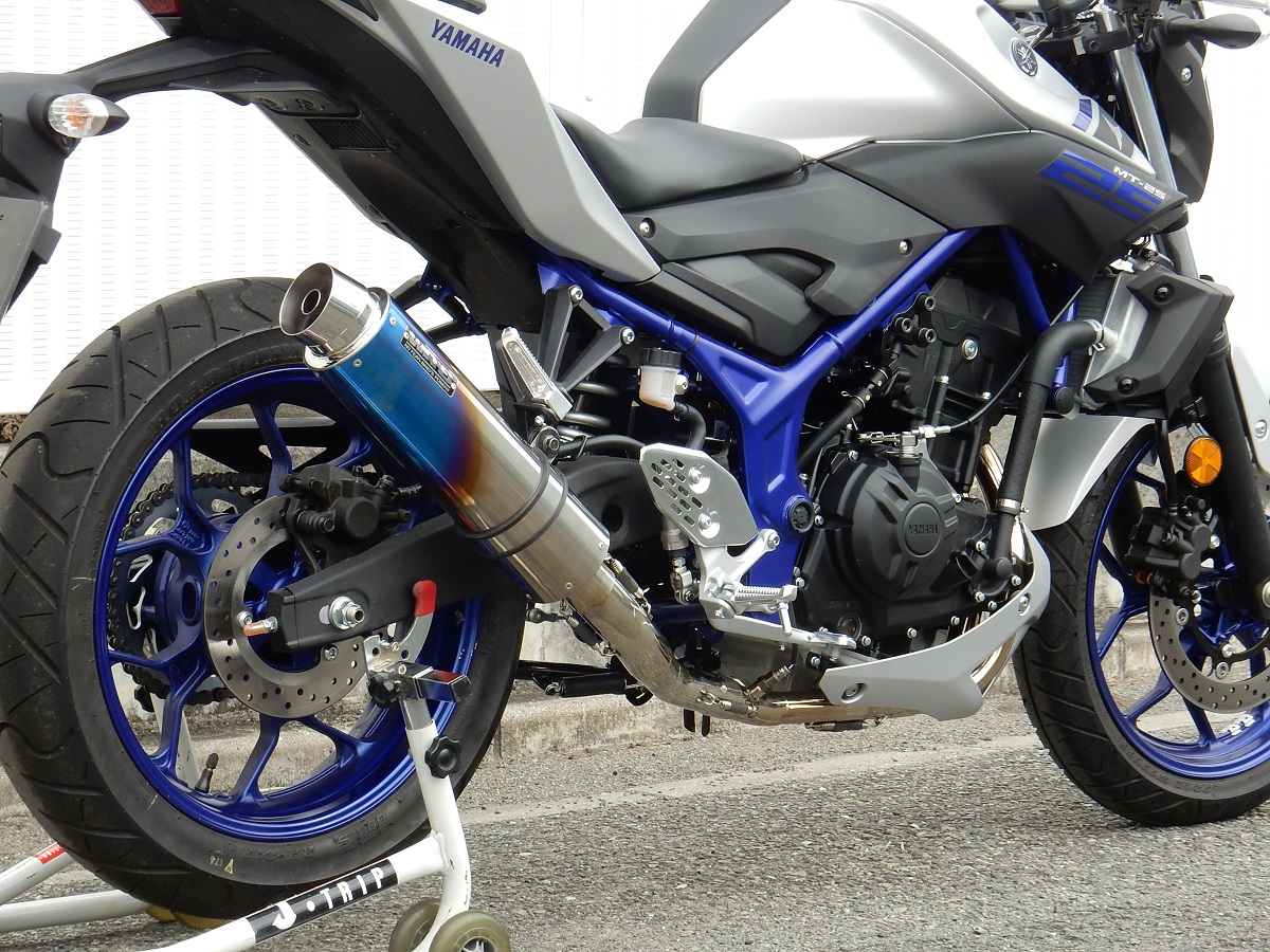 ・ YZF-R25 /MT-25用フルエキゾースト(異型チタンオーバル)マフラーがラインナップに加わりました。