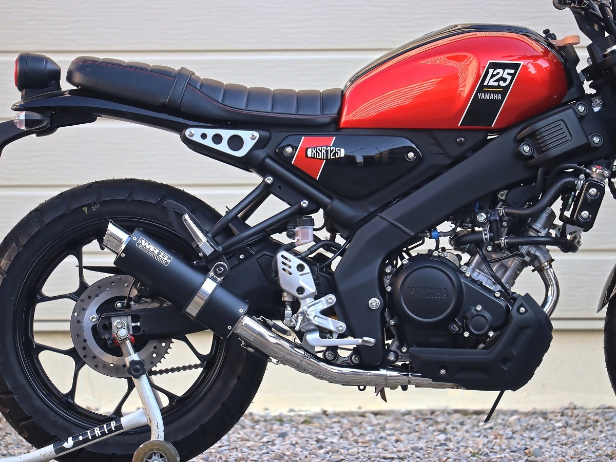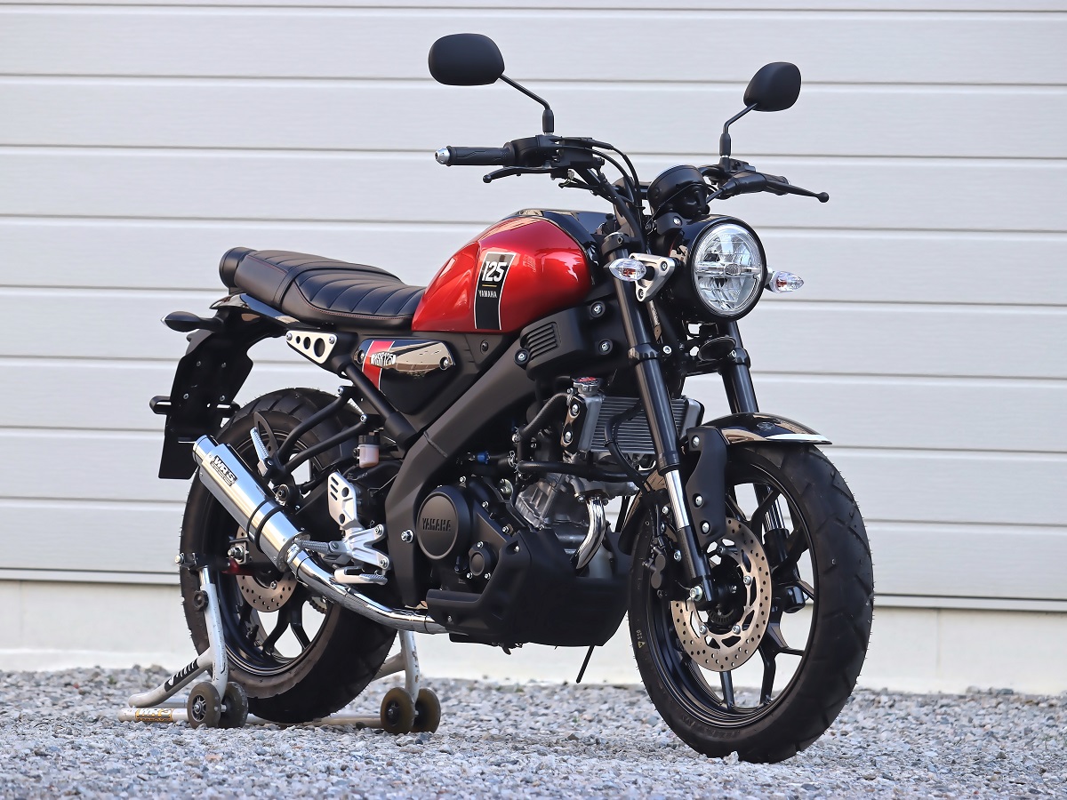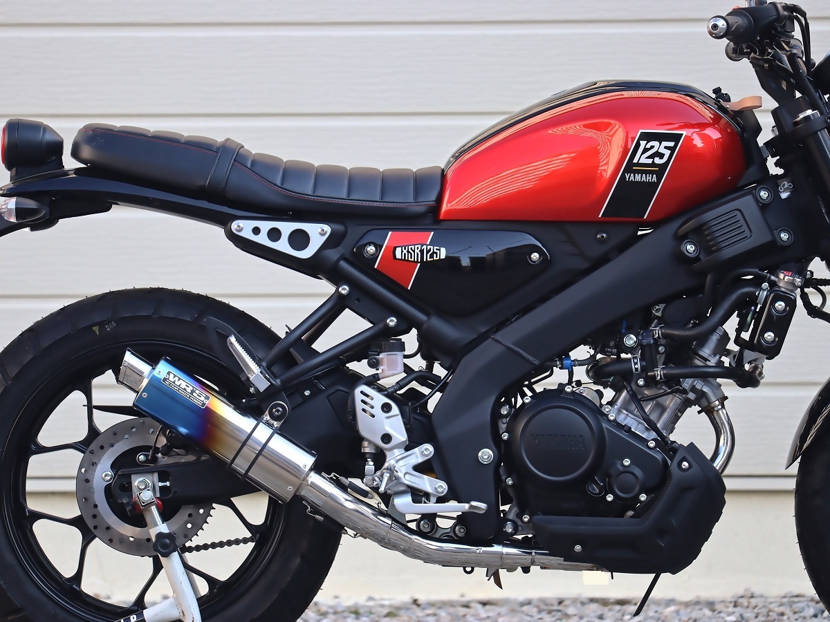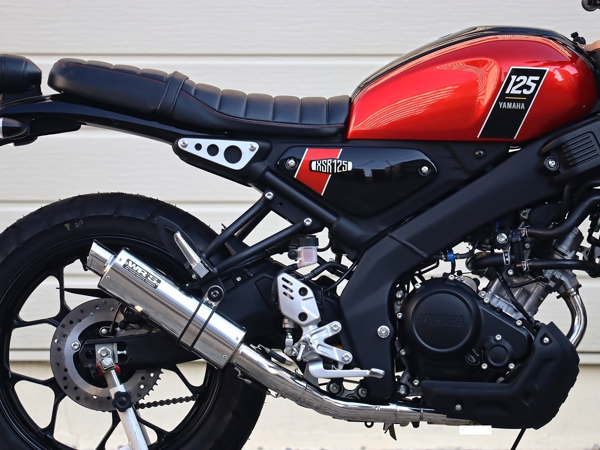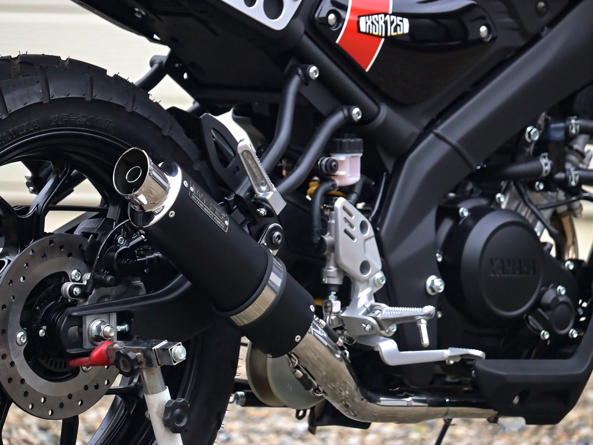 『XSR125のデザインに似合うサイレンサー』をコンセプトのもと、ショートオーバルサイレンサーを採用、兄弟車両である(YZF-R125/MT-125)用とは全く違うコンセプトにおいて完全専用設計でフルエキゾーストを開発しました。
