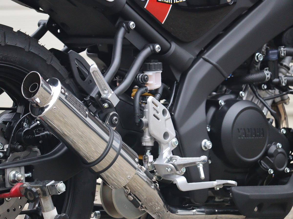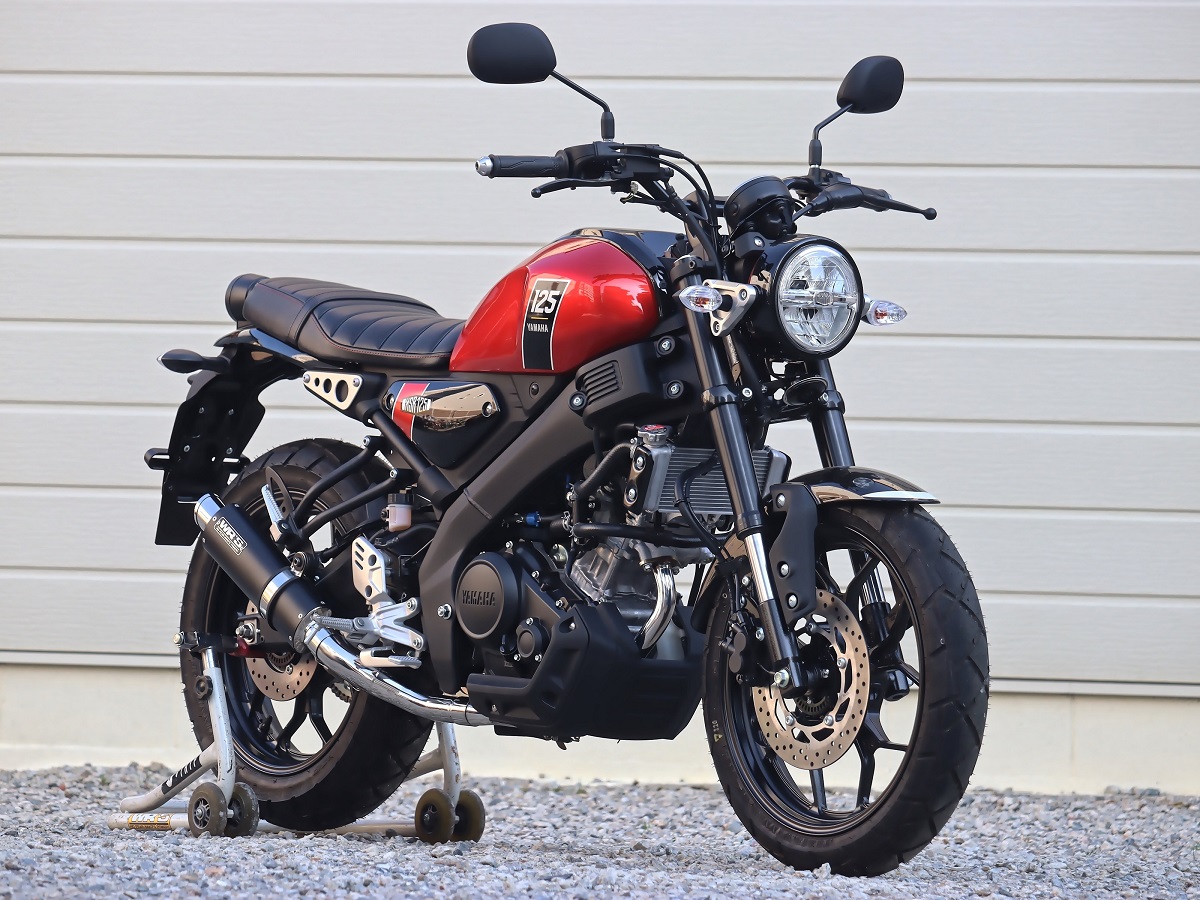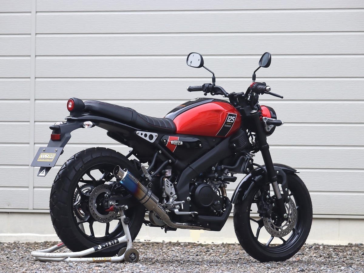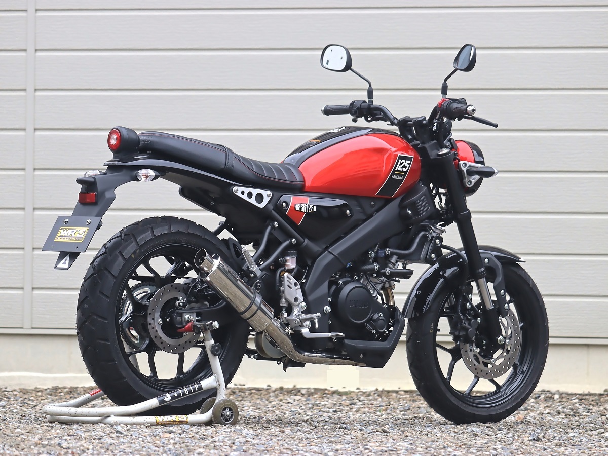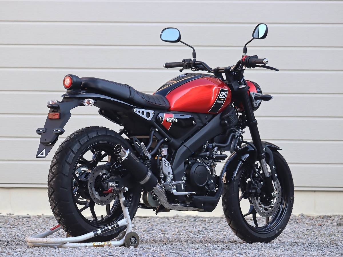 『XSR125のデザインに似合うサイレンサー』をコンセプトのもと、ショートオーバルサイレンサーを採用、兄弟車両である(YZF-R125/MT-125)用とは全く違うコンセプトにおいて完全専用設計でフルエキゾーストを開発しました。